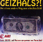Der etwas andere Weg zum schnellen Geld. Die Vollversion Geizhals ?! enthält (nicht immer ganz ernst gemeinte) Tips und Tricks zum Reichwerden. Erfahren Sie, wie Sie zum Spottpreis ins Urlaubsparadies kommen und wo sich die wahren Geldkiller verbergen. Weiterhin finden Sie interessante Informationen zu den Themen Erbschaft, Lotto oder Hausbau. Als Bonus über 200 PD und Sharewareprogramme rund ums Geld. Zum Sparpreis!
