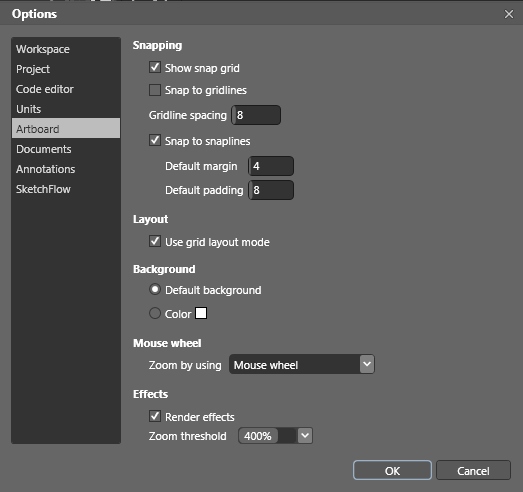 2. Click Turn on snapping to gridlines. Note that the default settings for gridlines can be changed by selecting Tools > Options.