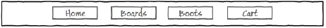 5. Double-click the first button to select the default text. Rename this button Home and then the next three buttons, Boards, Boots, and Cart respectively.
