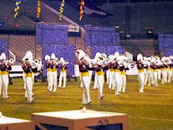 Pünktlich um 9.00 Uhr ging es los. Die Summer Music Games 1996 in Orlando Florida. Nüchtern wurden die Jury vorgestellt und dann kam auch schon der erste Corps. Kips Bay Boys + Girls hatten die unliebsame Aufgabe vor fast leeren Rängen zu spielen. Scheinbar sind bei den Vorausscheidungen nur Eltern mit Corps-Mitgliedern und die Jury gefragt. Dabei gab es auch schon zu früher Stunde Highlights, die aber von der Jury nicht immer honoriert wurden. Es zählt hier halt nicht der persönliche Geschmack, sondern eine Vielzahl von Faktoren.