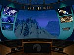 Die Unterwasser-AusstellungIn den Themenräumen" der Unterwasserstation, sei es bei Welt der Ozeane", Strömungen", Gefährdungen", Ein Element für alle" oder Bibliothek" begegnen dem Besucher zunächst die gleichen Raumelemente. Über Bildschirme wählt man weitere Unterthemen an und startet damit immer kurze, kommentierte Filmsequenzen, deren Bilder teils aus Dokumentaraufnahmen, teils aus Computer-Simulationen bestehen, die die Zusammenhänge illustrieren. Das Kapitel Strömungen unterrichtet z.B. anschaulich über neuere Erkenntnisse über die Wechselwirkungen zwischen dem Meer und unserer Atmosphäre. Außerdem erfährt man hier welchen Nutzen die Raumfahrttechnik und der Einsatz von Satelliten den Ozeanographen und Meeresbiologen beim Erforschen dieser Zusammenhänge bescheren. Die CD zeigt nicht nur schöne Bilder. Der ganze Themenbereich Gefährdung" setzt sich mit den Gefahren des Lebens im Meer durch uns Menschen, durch Überfischung, Umweltgifte oder den Schwund der Ozonschicht, auseinander. Immer wieder lädt dabei zum Blättern und Stöbern ein, denn die Richtungspfeile führen zum nächsten Themenkomplex. Wer lieber zwischen den Themen hin und her springt, gelangt über eine Suchfunktion zum Ziel.