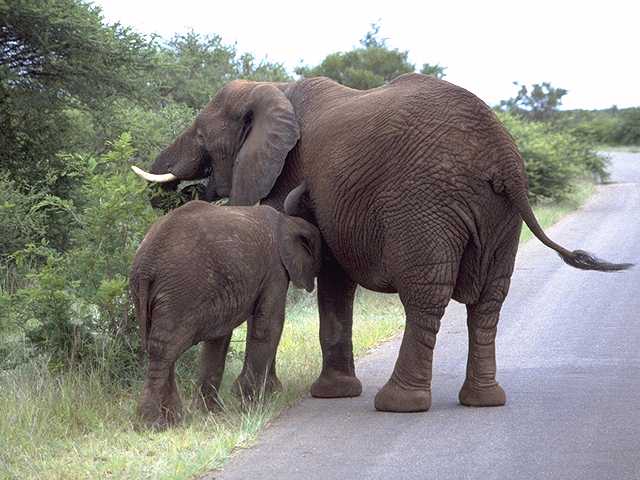 Elefantenmutter mit ihrem Jungen