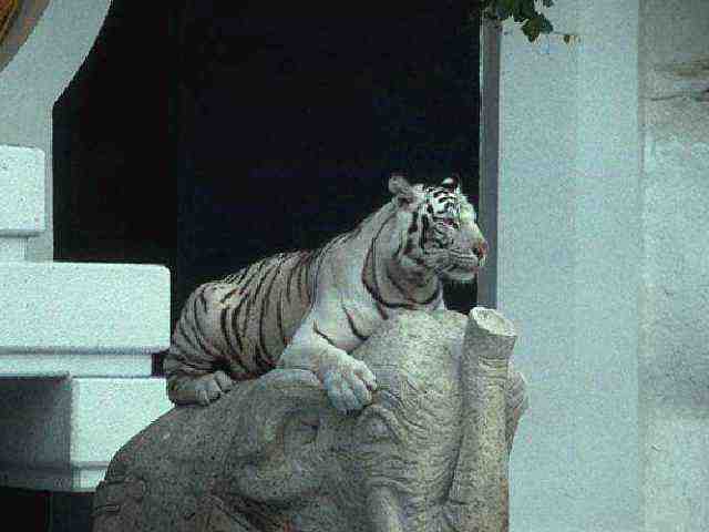 Weißer Tiger auf Steinfigur