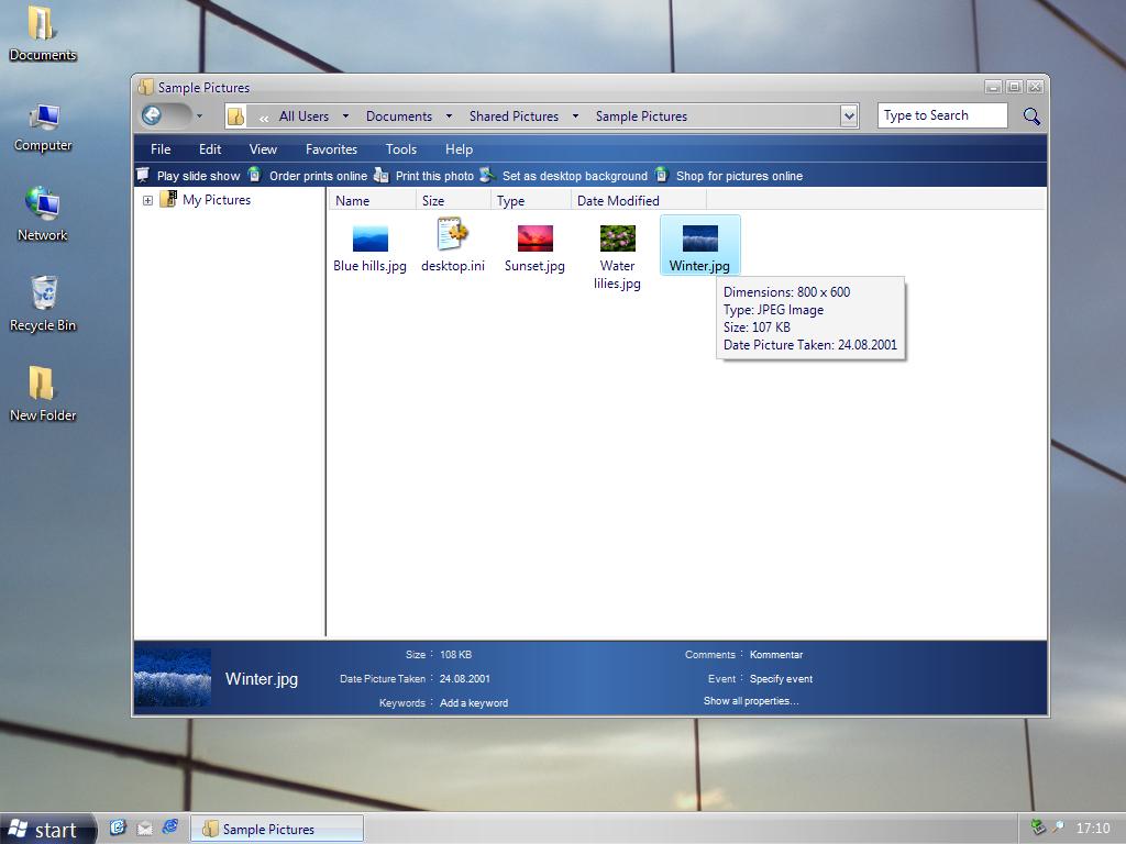 Der Explorer hat eine übersichtliche "Properties"-Tab spendiert bekommen, in welcher jetzt alle Dateiinformationen angezeigt werden. Je nach Relevanz des Ordners ändert sich auch die Farbe des Fensterinhalts (Windows-Ordner z.B. Rot, ein eigener neuer Ordner Blau). Er läuft in dieser Build sehr flüssig und fehlerfrei, es wird jedoch nur bis zur nächsten Build, vermutlich Beta 1, dauern, bis der Explorer wieder mit nutzlosen Funktionen angefüllt wird, und dadurch wie der in Longhorn 4051 endet.