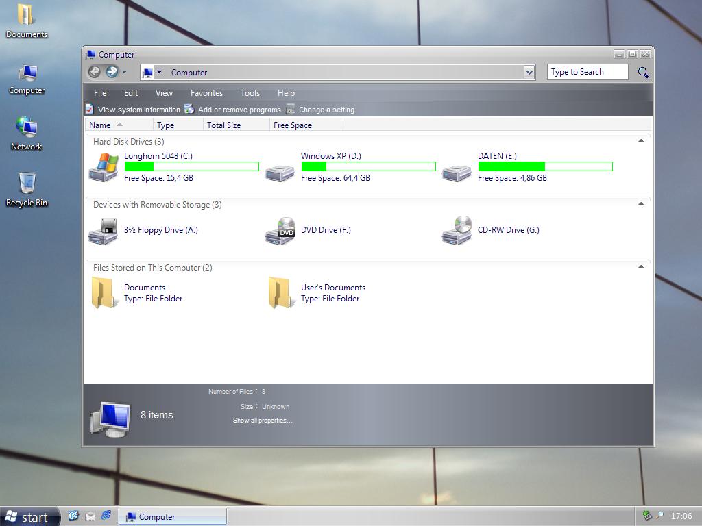 Der neue Explorer - er läuft verdammt schnell im Gegensatz zu Longhorn 4074 (Anklicken zum vergrößern)