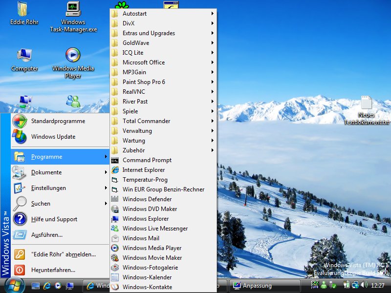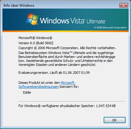noch 2,5 GB belegt Windows Vista RC1 auf der DVD. Das Standard-Aero Design für