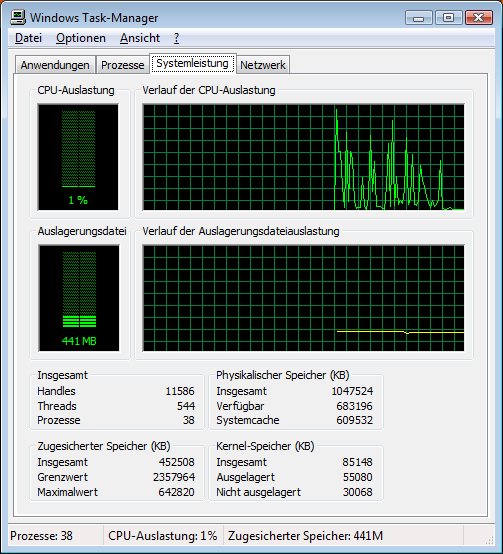 | Von 1024 MB sind noch 680 MB frei, also Vebrauch von