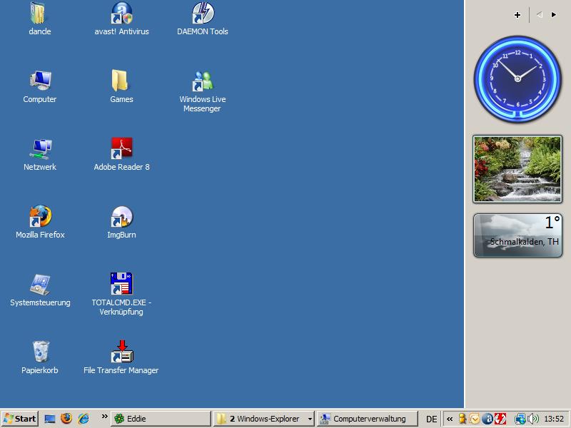 | Der Desktop von Windows Vista, neu hinzugekommen ist die Sidebar |