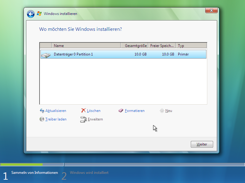 Dann möchte das Vista-Setup gerne den Key zur Aktivierung haben, aber auch ohne Key kann man Vista 30 Tage lang testen.