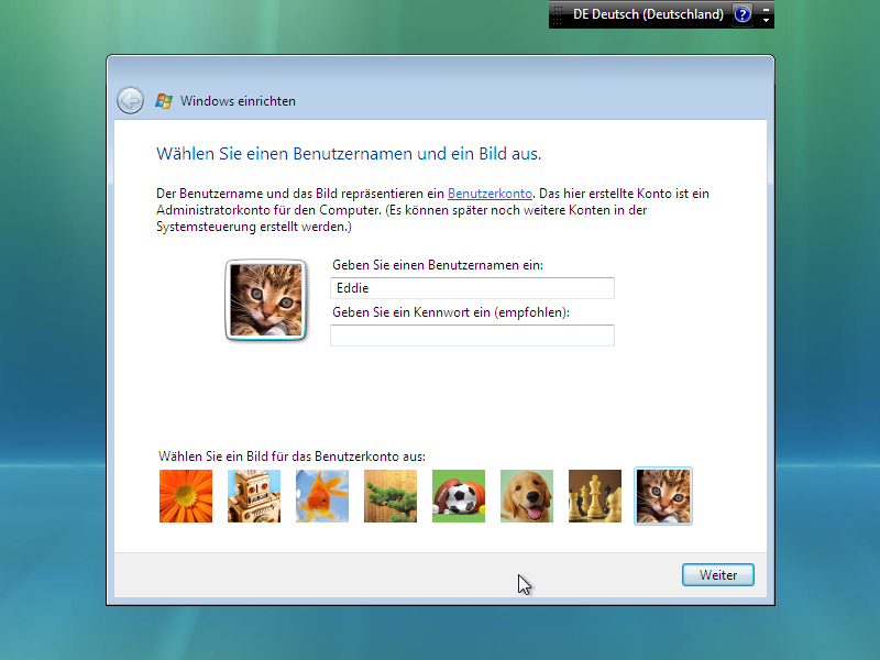 | Fast geschafft, Netzwerkwahl und Vista kann starten |