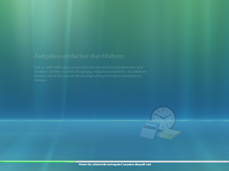 Nach einem Neustart geht es dann mit den Vorbereitungen für den ersten Start weiter. Vista konfiguriert hierbei die Hardware des Rechners.