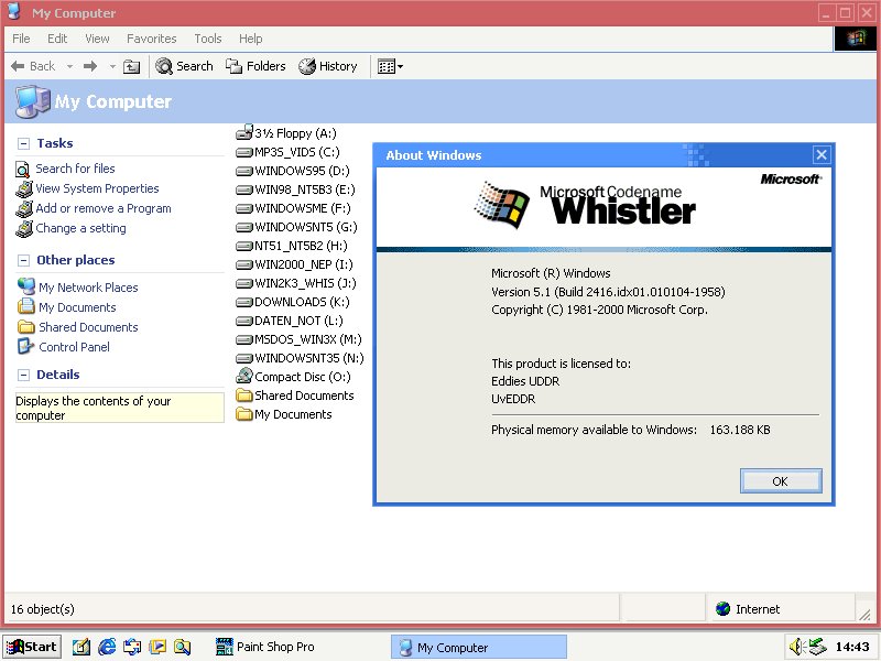 Naja, Windows Whistler ist der traurige Weg hin zu Windows XP, wobei diese Build dabei noch relativ gut aussieht. Allerdings lässt es sich nur bis zum Jahr 2000 installieren, also muss die Systemzeit auf 2000 zurückgestellt werden, um das Betriebssystem zu installieren.