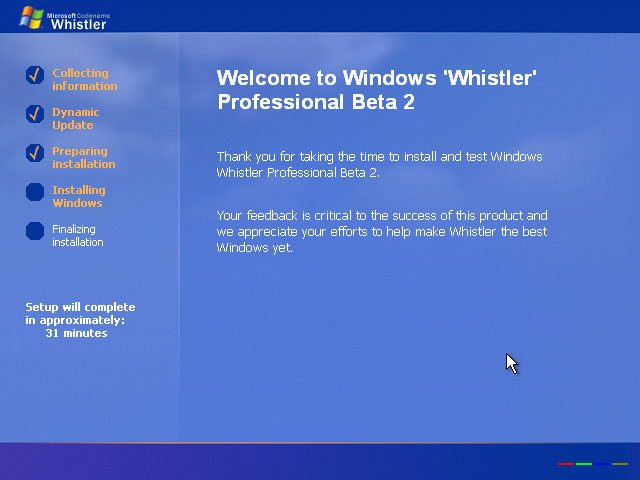 Das Setup erinnert stark an XP RTM. Erst auf den zweiten Blick erkennt man, dass es sich um Whistler