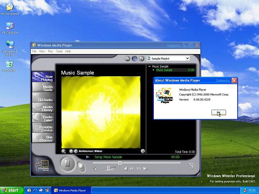 Der Windows Media Player prahlt mit der Version 8.0 gleicht dem 7.1er von Windows ME aber sehr.