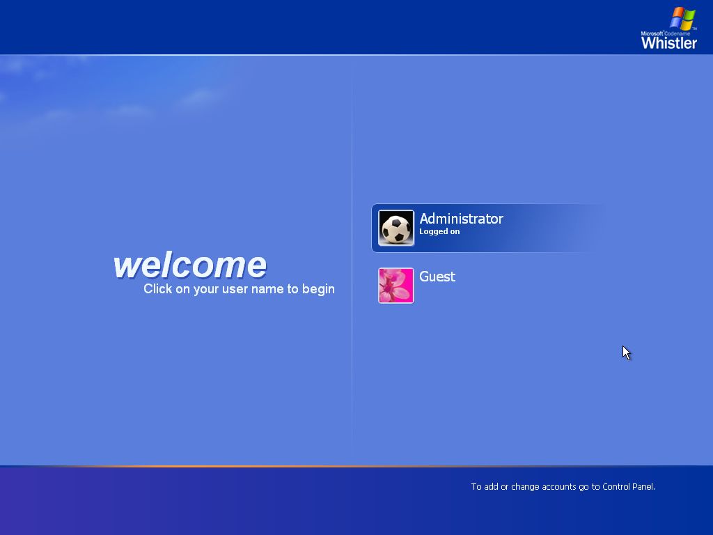 Der Boot ist recht unspektakulär, jedoch sieht das Bootlogo von Whistler schöner aus als das, der finalen XP