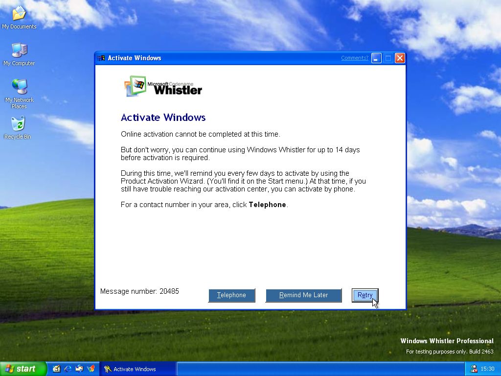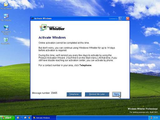 damals, als Microsoft die Aktivierung Whistlers noch zu lies, problemlos und verweigert dem Benutzer nach
