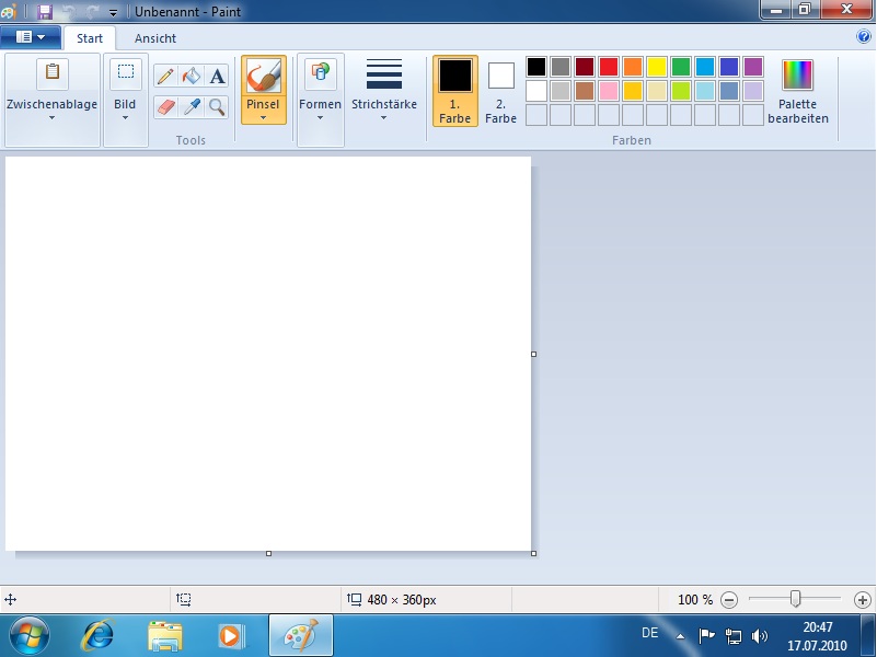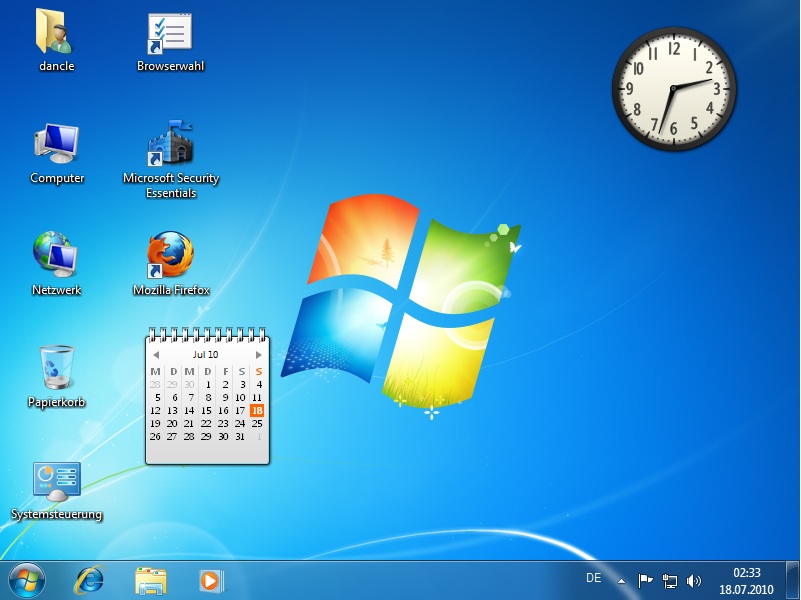 Dort sieht man schon die größte Neuerung von Windows 7, die komplett überarbeitete Taskleiste, die jetzt Superbar genannt wird. Programme können dort angeheftet werden, was in etwa der alten Schnellstartleiste entspricht. Die Option "Desktop anzeigen" wurde jetzt nach ganz rechts verlegt, anfangs ungewohnt, war es doch früher immer fast ganz links. Minimierte Programme sehen dann eher so aus wie damals unter Windows 3.xx, als minimierte Programme auch Symbole und noch keine Schaltflächen waren. Ist sicher sehr ungewöhnt, zumal 2 geöffnete Internet Explorer auch nur 1 Symbol haben und man damit nicht wie früher per Klick auf ein Symbol das Programm minimieren kann. Nervig. Auch kann man das alte Startmenü nicht mehr aktivieren, auch hier ein eindeuiges Minus in Sachen Benutzerkomfort.