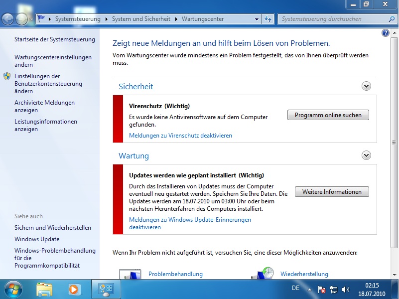 Das seit Windows XP SP2 enthaltene Sicherheitscenter wurde jetzt umbenannt und wird jetzt Wartungscenter genannt und passt damit besser zur eigentlichen Aufgabe.
