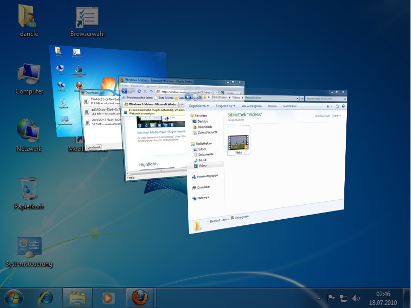 | Anwendung wechseln (Windows-Taste+Tab) unter Windows 7 mit Aero Glass |