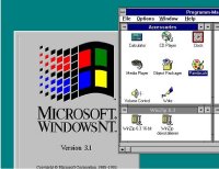 Die erste NT Version erschien 1993 und seit 1988 arbeitete man an "OS/2 Version 3.0", welches dann PortaSys 1.0 heißen sollte, doch durch den Erfolg von Windows 3.1 entschied man sich für Windows NT (NT= New Technologie). Version 3.1 aus Marketing-Gründen mit Windows 3.1. Neuerung: kein DOS, NTFS-Dateisystem, lange Dateinamen. | ![]() |