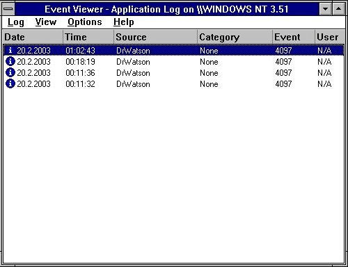 In Windows NT 3.1+ wird alles protokolliert, der Event Viewer merkt sich alle wichtigen Protokolle: