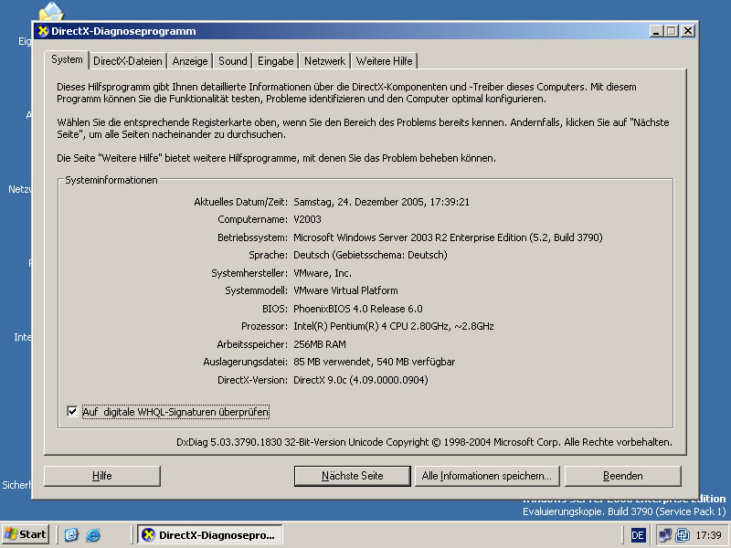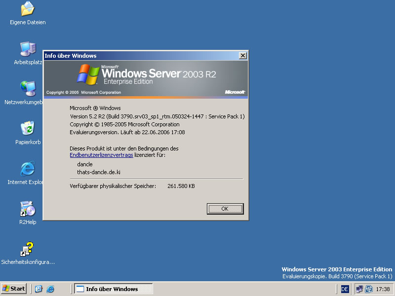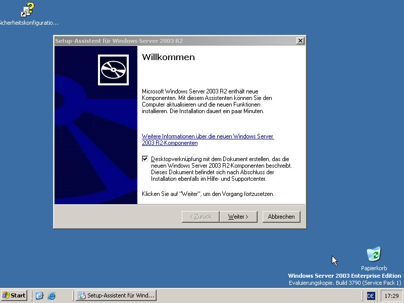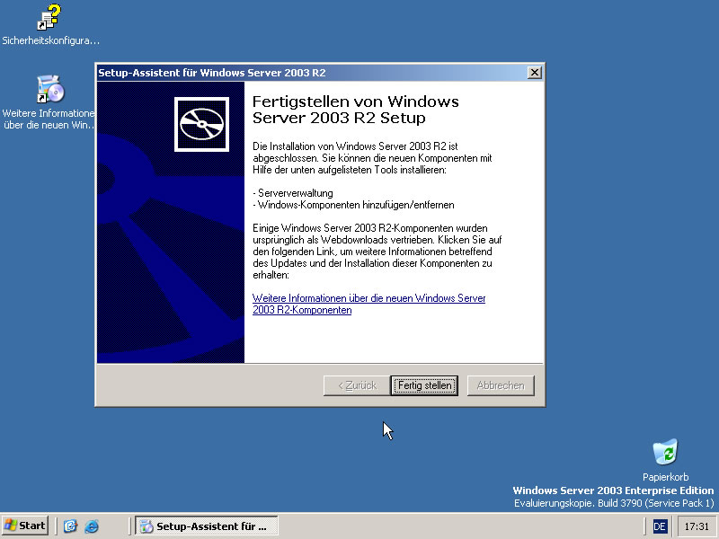 | Anstatt "Windows Server 2003" steht jetzt "Windows Server 2003 R2" da. |