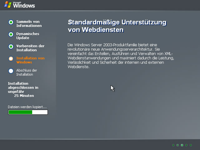 | Das kopieren von Dateien dauert zirka 5 Minuten. |