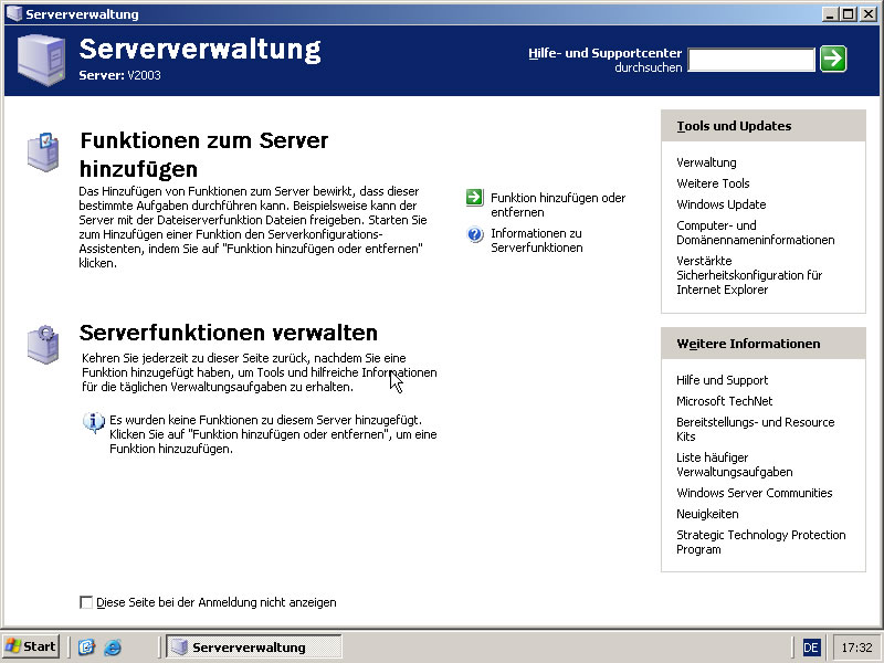 Es wird außerdem bei jeden Systemstart die Serverwaltungskonsole geladen wo Features hinzugefügt oder gelöscht werden können.