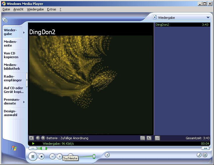 | Der Windows Media Player 9 (upgedatet) im Classic-Windows-Design sieht aus wie unter Windows ME |