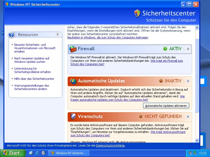 | Ein Teil des neuen Windows-Sicherheitscenters in Windows XP SP2. |