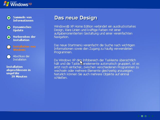 | Das dauert aber! Noch 39 Minuten für die Installation von XP. |