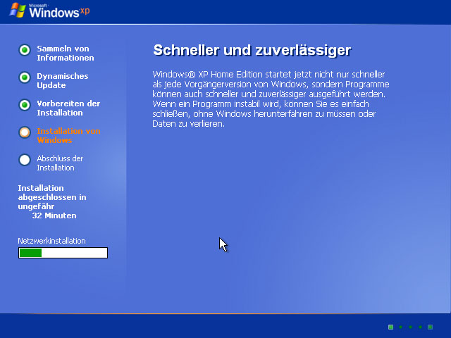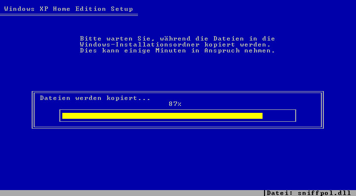 Jetzt wo auch das Netzwerk fertig eingerichtet ist kann Windows endlich alle Dateien in den Windows-Ordner kopieren. Dies geht zum Glück schnell vonstatten.