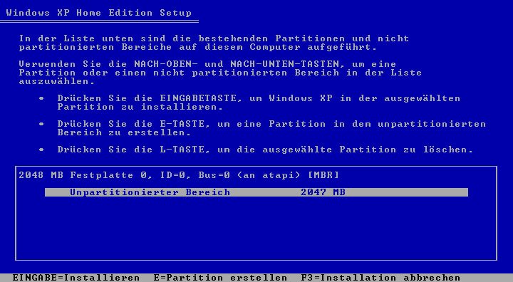 Installation von Windows XP: (THX to dancle for Screenshots)