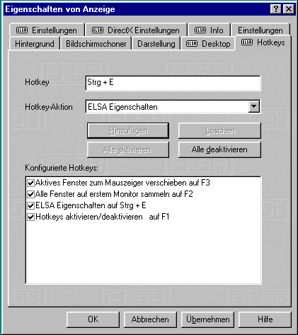Das Handling ist auch bei mehreren Applikationen und deren Zuordnung auf die einzelnen Monitore für den Anwender denkbar einfach. Die Bedienung erfolgt ganz intuitiv über Zusatz-Buttons, die automatisch in die Windows-Programme implementiert werden. Unter "Eigenschaften von Anzeige" können im Register "ELSA-Desktop" die Zuordnung der Funktionen einfach auf die eigenen Anforderungen angepaßt werden.