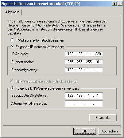 >Eigenschaften< >Folgende IP-Adresse verwenden< |