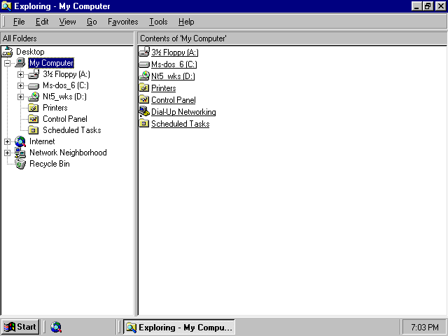 Der gesamte Explorer wurde aus Windows 95 importiert, er hat keine Vorwärts oder Rückwärtsbuttons und ist nur umständlich zu bedienen.