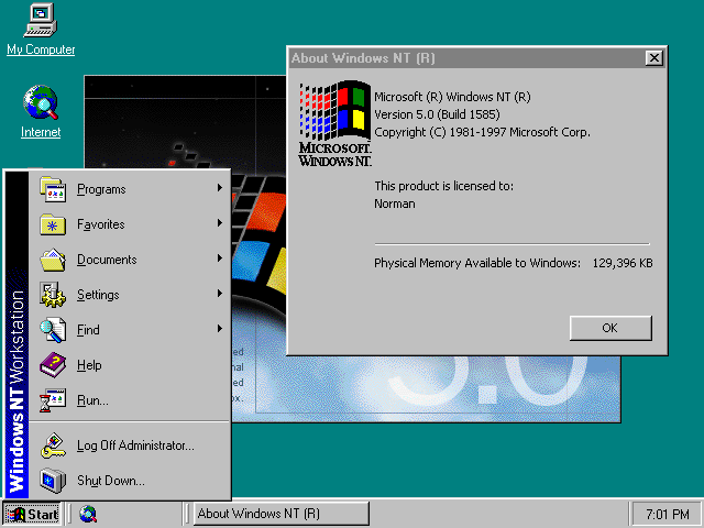 Die 1585 ist die erste geleakte Build von Windows 2000, die aber noch sehr sehr starke Ähnlichkeit zu Windows NT 4 hat.
