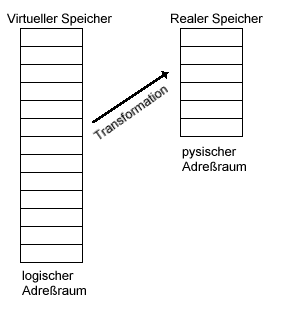 Der Adreßraum, auf den sich die Programmbefehle beziehen, ist der logische Adreßraum. Der Adreßraum des realen Arbeitsspeichers ist der physische Adreßraum. --> Programme können unabhängig vom physischen Adreßraum geschrieben werden.