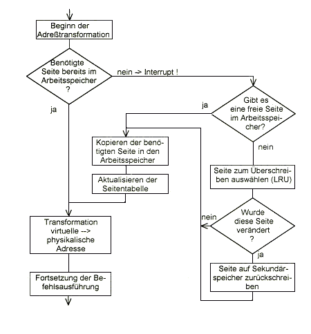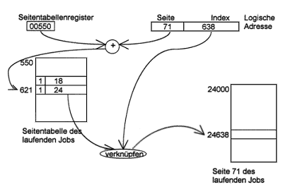 Wegen der festen Seitengröße liegt auch die Grenze zwischen Wortadresse und Seitennummer immer an der gleichen Stelle. Die physische Seitennummer muß mittels der Adreßtransformation aus der logischen Seitennummer ermittelt werden.