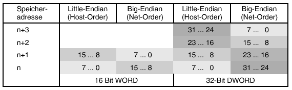 Alle Zahlenwerte müssen in Network Byteorder (Big-Endian) vorliegen. Ein Beispiel für eine Zuweisung an eine Variable my_addr vom Typ struct sockaddr_in könnte lauten: