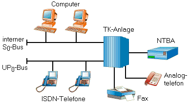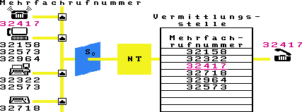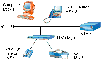 Auch bei einem Mehrgeräte-Anschluss kann übrigens eine Telefonanlage mehrere (meist auch analoge) Geräte versorgen, doch erhöht sich dadurch die Anzahl der verfügbaren Rufnummern nicht, denn zu diesem Anschlusstyp gehören ja maximal zehn MSNs. Gespräche innerhalb der Telefonanlage kosten keine Gebühren, während ein Telefonat zwischen den direkt am S0-Bus angeschlossenen Telefonen eines Mehrgeräteanschlusses dasselbe kostet wie ein Ortsgespräch zu einem ganz anderen Teilnehmer.