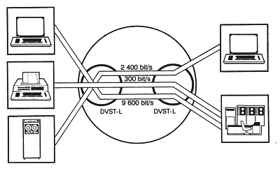 Übertragungsgeschwindigkeit vom Partner ab (Datex-P bis 9600 BPS).