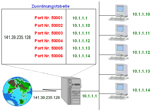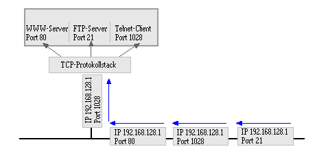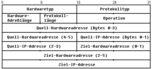 Die Umsetzung einer IP-Adresse in eine Hardware-Adresse erfolgt durch Tabellen und auf Hardware-Ebene (z. B. Ethernet) automatisch über ARP (Adress Resolution Protocol). Dazu ein Beispiel: