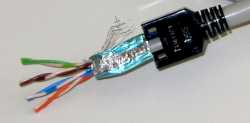 Kupferkabeln in Netzen. Es gibt vier Kabelpaare: