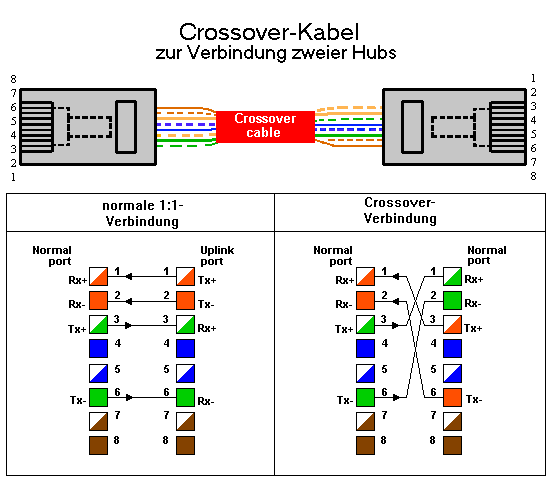 gerät. Normales 100BaseT- und 10BaseT-Kabel kommt mit den Adern an den Pins 1, 2, 3