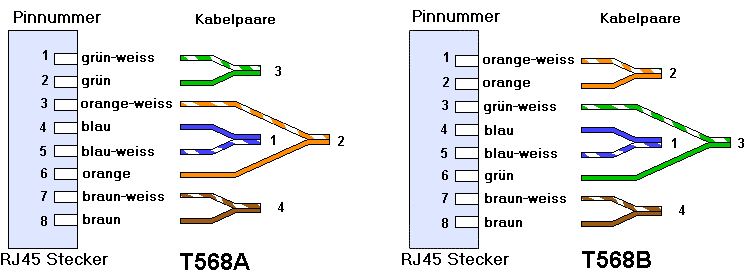 In der folgenden Tabelle sind einige Belegungen von achtpoligen RJ-45-Steckern