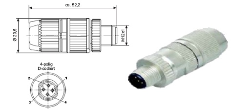 sondern es werden 4-polige M12-Steckverbinder mit D-Codierung verwendet. An diese