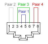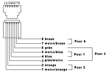 - 10BaseT verwendet die Paare 2 und 3 (ebenso 100BaseTX)