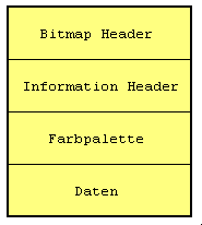 Hier wird beispielhaft nur die MS-Windows Version ab 3.x beschrieben. Eine BMP-Datei besteht aus vier Abschnitten: