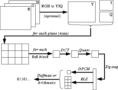 Die Komprimierung mit dem JPEG Baseline Codec besteht im wesentlichen aus 5 Schritten: